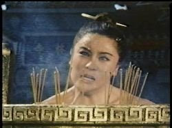 Fight For Survival with an appropriate place for a tidy little ending, the filmmakers decide to tie up some loose ends that no one but them cared about. And so we get a somewhat confusing episode in which those aforementioned respected kung fu masters show up at the temple demanding that their errant disciples be freed. This culminates in a fight between Polly and the masters during which the masters employ a method that I can only describe as a kung fu conga line. (I'm sorry that I couldn't get a screencap of that, but the director wisely chose to not let the camera dwell on it long enough for anyone to appreciate just how screamingly absurd it was.)
