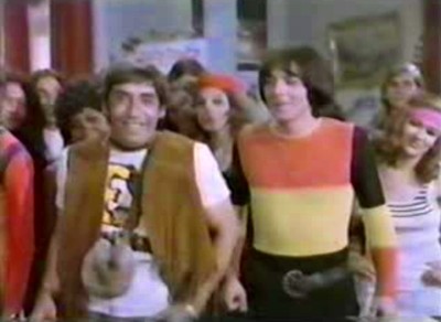Bikinis Y Rock is one of those movies where bands are constantly performing at parties that go on forever and everyone dances. Unlike real parties, where people just stand around holding red plastic cups until it's time to run to the yard to vomit. Said bands and parties take place at a commune run by El Loco's guru character, who looks like a mugshot you'd find while browsing those "Are sexual predators in your neighborhood?" websites. Attending this Guru's hippie cult are Alex and his friend Lalo (Ricardo Cortés and Lalo "El Mimo"), who are instrumental in the cult having their non-stop rocking.